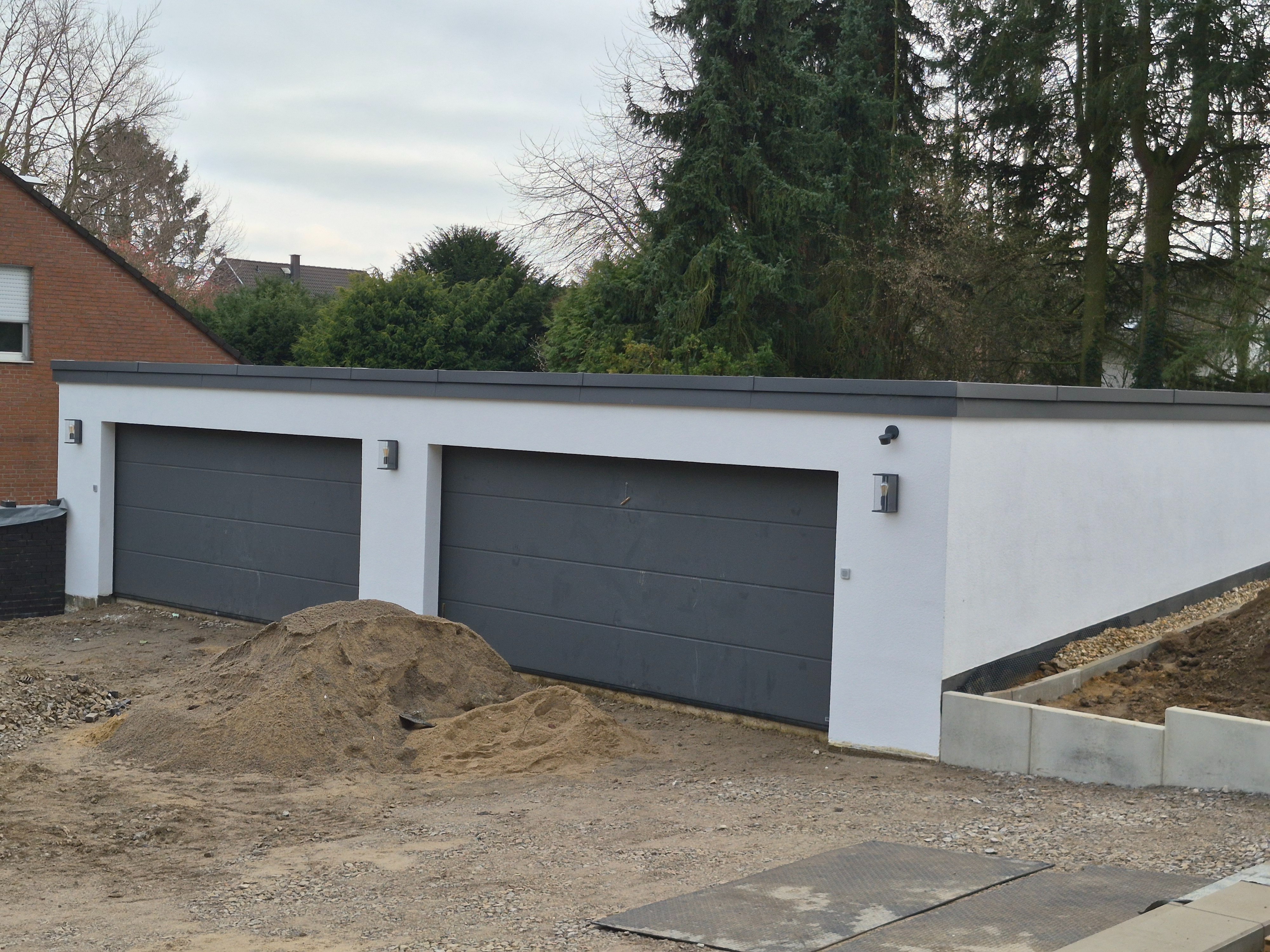 Die Doppelgaragen sind jeweils mit einer Walbox ausgestattet. Die Bewässerrung des Gartens erfolgt durch einen eigenen Brunnen.
